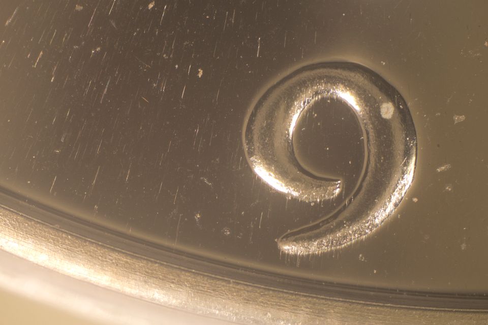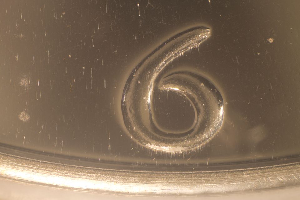 This photo is from another example of this variety that James Wiles also said was "Too minor to list." The scratch is a little lighter but there.