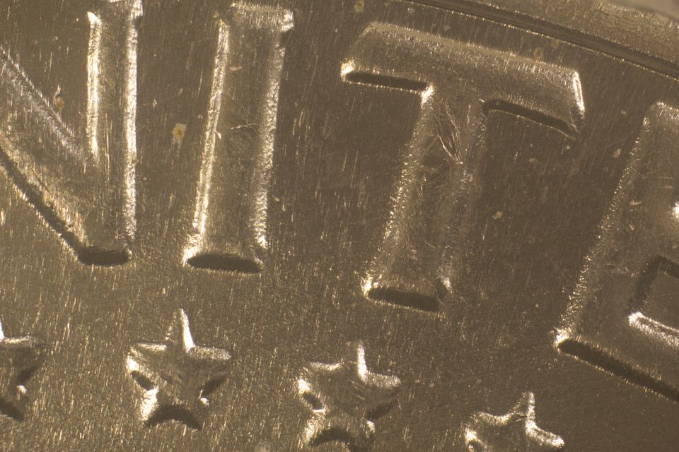There are several heavy die scratches on the obverse.