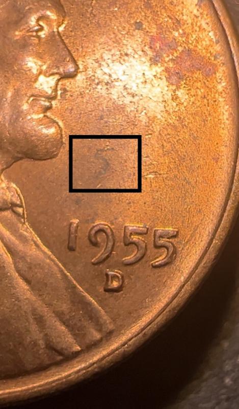 This 1955 D penny has a misplaced 5 on the coin. It appears twice on the coin but the second one is very faint and can only been seen at an angle. Is this considered an error?